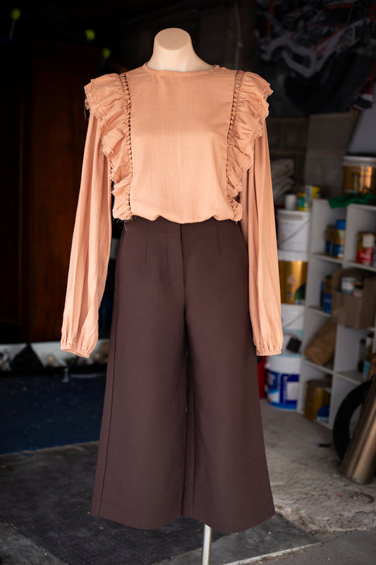 Ombre Peach Pleated Skirt and Country Road textured T-shirt.
